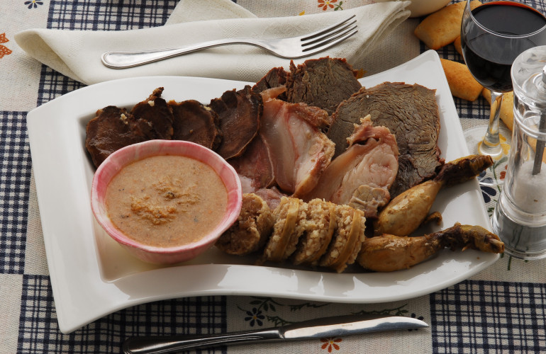 Per prima cosa procedere con la realizzazione del brodo: mettere a bollire la gallina e il manzo insieme con la carota, la cipolla e il sedano fino a raggiungere la giusta cottura delle carni: in una pentola a parte preparate il cotechino, la testina di vitello e la lingua; saranno fatte bollire in acqua separatamente, ponendo molta attenzione nel mantenere intatto il budello del cotechino, al fine di non rovinarne il suo prezioso contenuto, e tenendo a mente di cambiare almeno una volta l’acqua per sbollentare la lingua.
