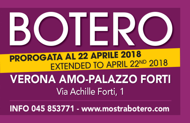 Patrocinata dal Comune di Verona e organizzata e co-prodotta da Gruppo Arthemisia e MondoMostre Skira, con il contributo di Gruppo AGSM, sponsor dell’iniziativa, la mostra su Fernando Botero (a cura di Rudy Chiappini in stretta collaborazione con l’artista stesso) ha riscosso un grandissimo successo tanto da aver deciso di prorogarne l’apertura fino al 22 aprile 2018.
